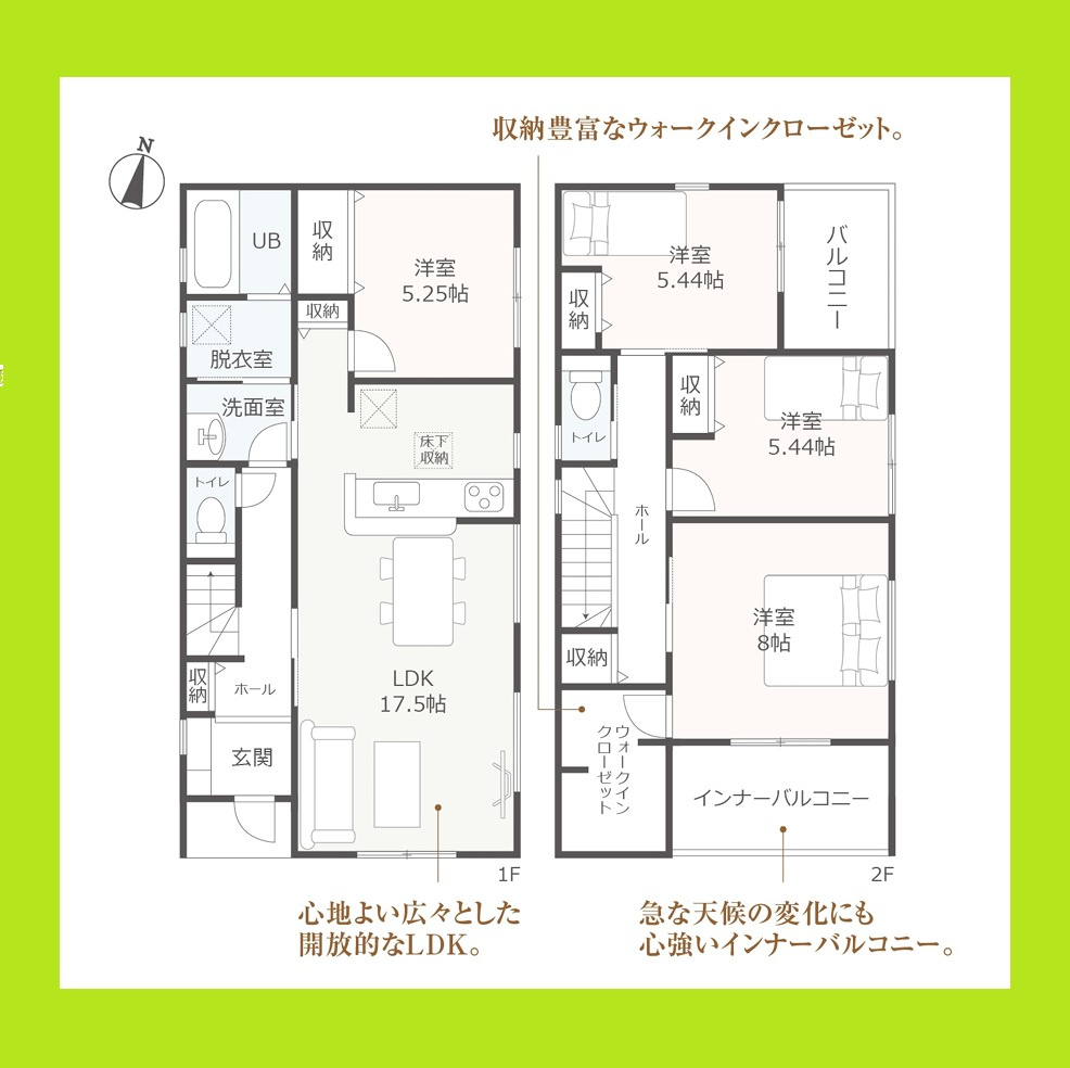 【外観】☆残り1棟☆ いつでもご案内出来ます♪(お問合せ当日、平日、水曜、夜間でもOK) 敷地48.75坪 駐車3台OK LDK17.5帖♪ WIC完備